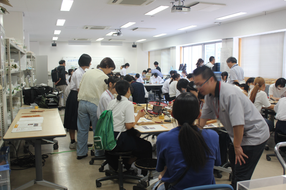 オープンキャンパスでは、準備から当日の運営まで、教職員が一丸となって取り組んでいます。中でも技術職員は、教員と連携して実験や工作など多彩な催しを企画し、機材の準備や安全管理、当日の実演サポートに至るまで幅広く関わっています。専門知識を活かし、参加者にとってわかりやすく魅力的な体験となるよう、細やかな工夫を重ねています。