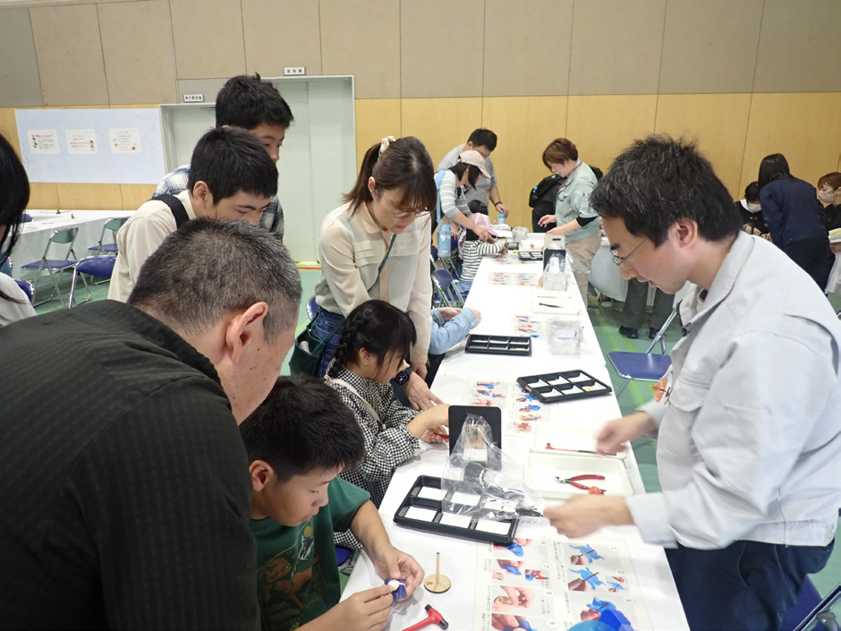 サイエンスフェスタは、小中学生を対象としたモノづくりの魅力と創造の楽しさを実感してもらう学校開放行事です。昨年度は、立体模型の工作やロボット操縦体験など13ブースが出展し、2日間で延べ2,700名を超える来場者を迎え、大きな反響をいただきました。こうしたイベントの企画・運営には、教職員と学生が一丸となって取り組んでおり、広報用ポスターの作成から当日の運営まで、多くの場面で職員が中心的な役割を果たしています。